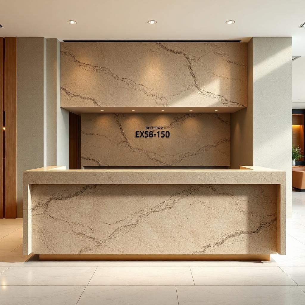 Đá có khả năng chống trầy, chống ẩm, chịu nhiệt tốt, phù hợp khu vực lễ tân – nơi thường xuyên tiếp xúc.