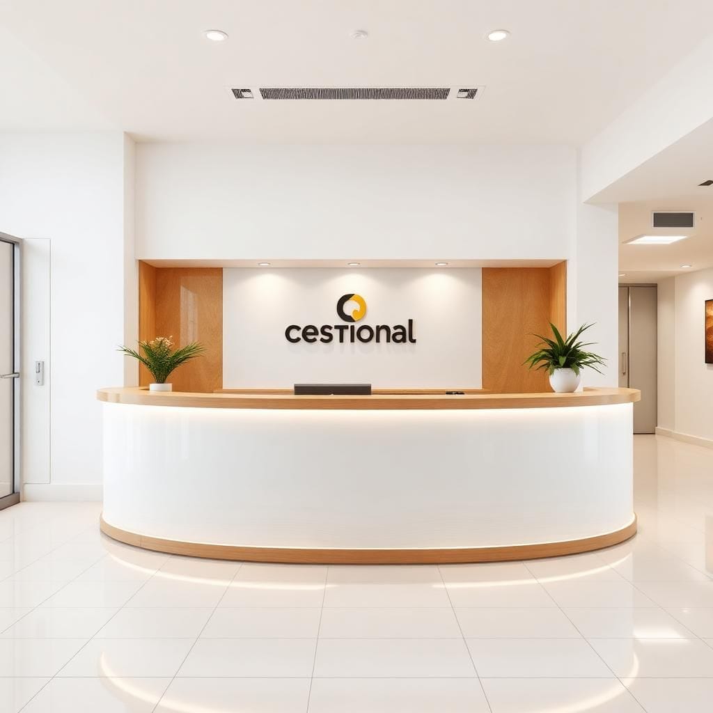 Một sảnh lễ tân với quầy bo cong sẽ khiến toàn bộ không gian trở nên sang trọng, chuyên nghiệp, giúp khách hàng cảm nhận giá trị cao cấp ngay từ khi bước vào.