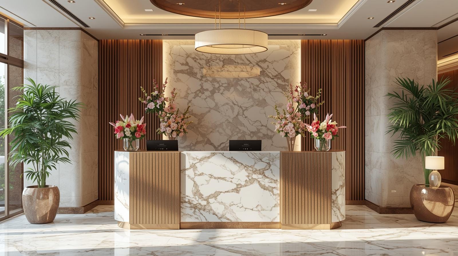 Ấn tượng đầu tiên ảnh hưởng lớn đến cảm xúc khách hàng. Một quầy lễ tân thẩm mỹ viện sang trọng, tinh tế sẽ khiến khách cảm thấy an tâm về chất lượng dịch vụ ngay từ khi bước vào.
