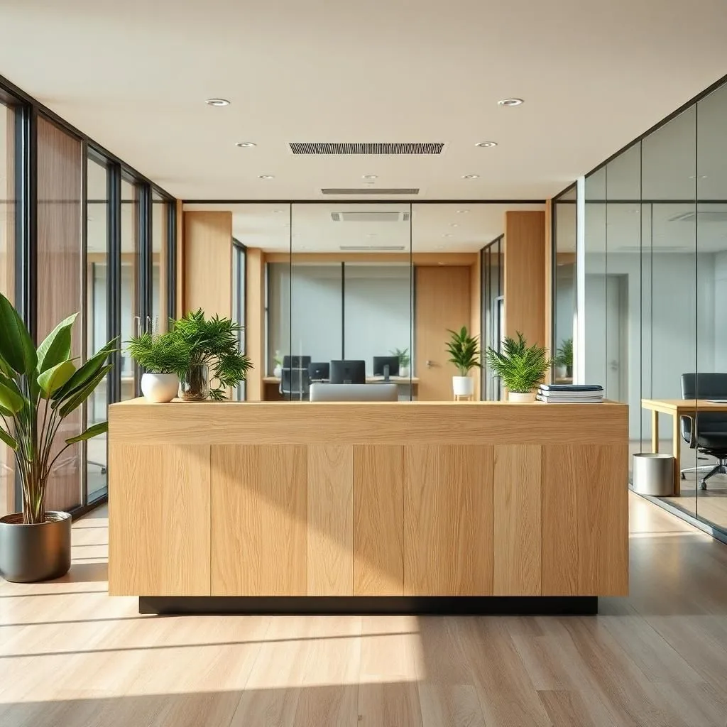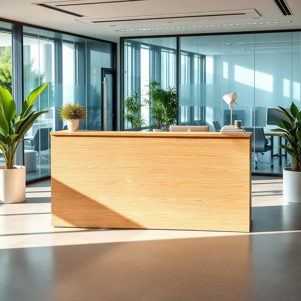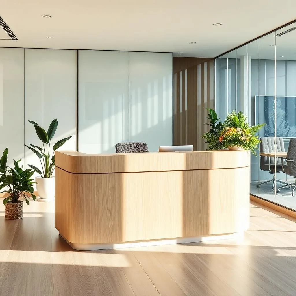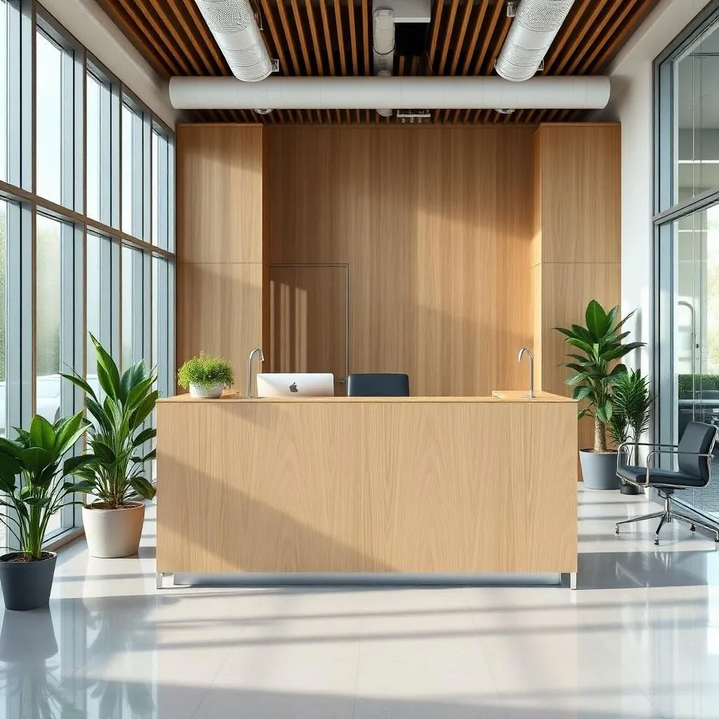 Xu hướng Minimalism tiếp tục dẫn đầu, đặc biệt trong các văn phòng hiện đại. Quầy lễ tân MDF phủ Melamine hoặc Acrylic với gam màu trung tính như trắng, xám, be giúp không gian trở nên tinh gọn, sang trọng.