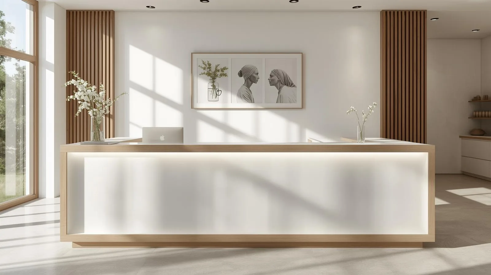 Năm 2025, các mô hình spa, shop, quán cafe nhỏ ngày càng ưa chuộng quầy lễ tân 2m dạng thẳng hoặc chữ L. Kiểu thiết kế này giúp tiết kiệm diện tích, tối ưu công năng, dễ bố trí trong không gian hẹp mà vẫn giữ sự chuyên nghiệp.