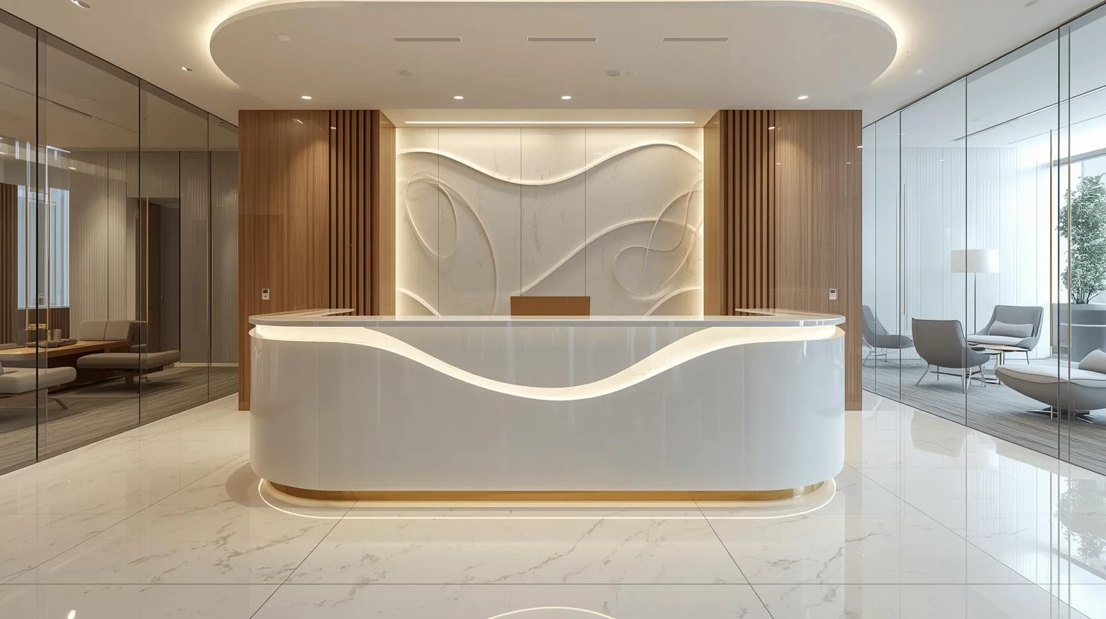 Ảnh hưởng tâm lý khách hàng: Không gian lễ tân ấm cúng, sang trọng tạo cảm giác tin tưởng.