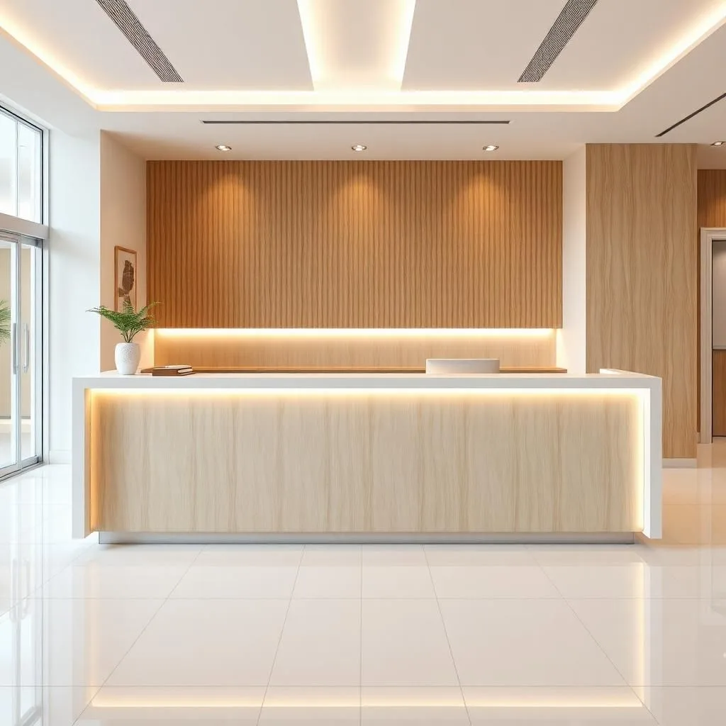 👉 Với nhiều dự án thực tế đã triển khai, Bluecons được đánh giá là đơn vị thi công quầy lễ tân chữ U uy tín hàng đầu.