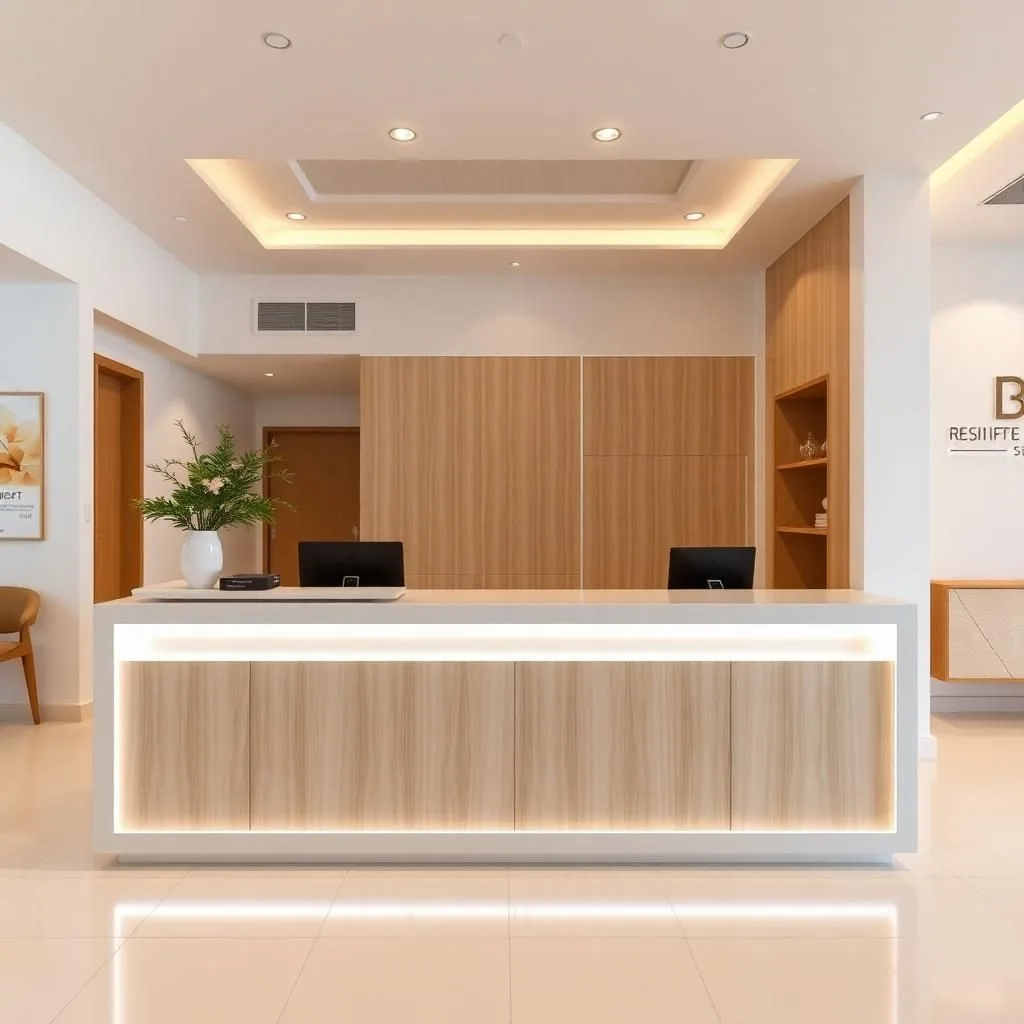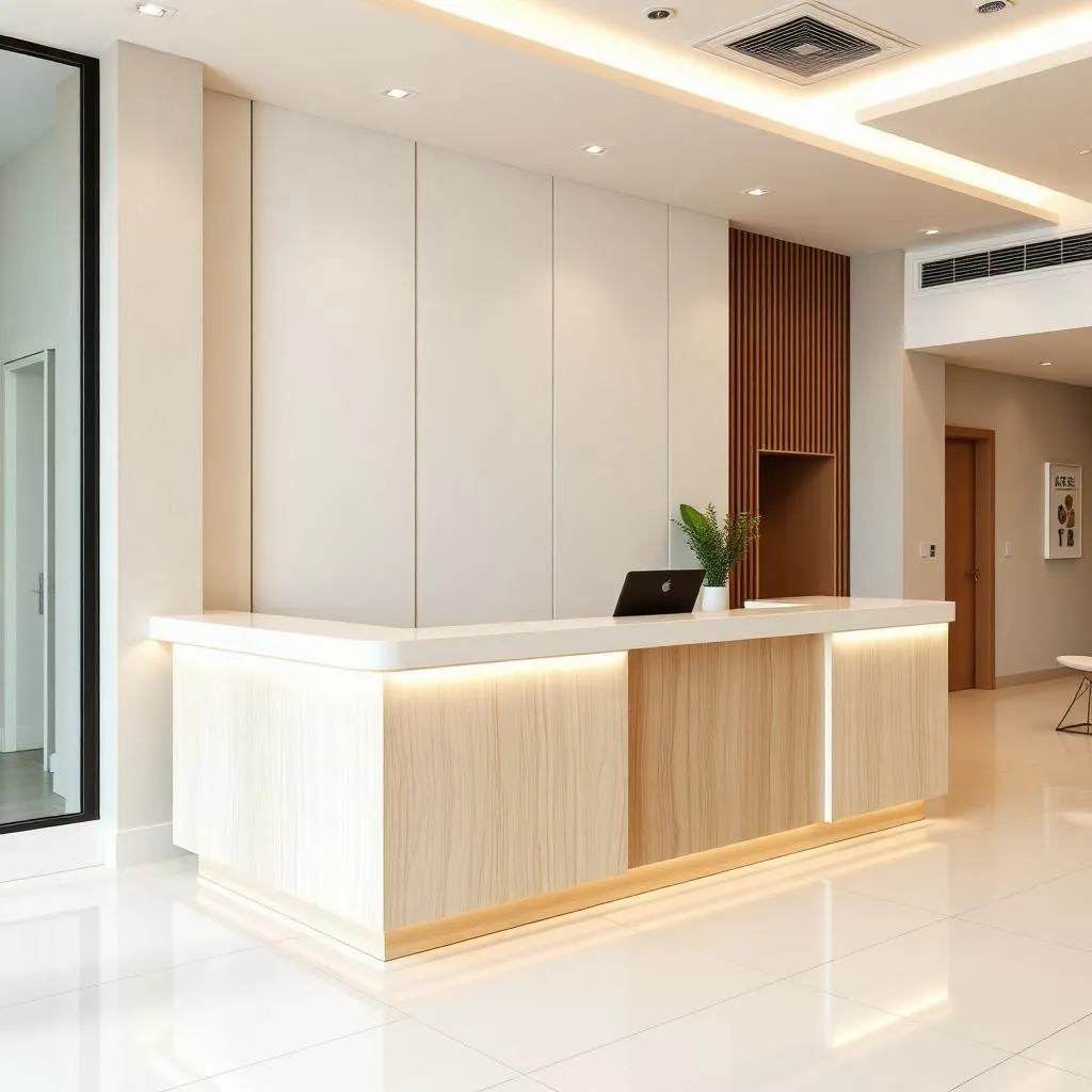 Mẫu mã đa dạng: từ quầy modular mini cho spa nhỏ đến quầy chữ U lớn cho khách sạn.