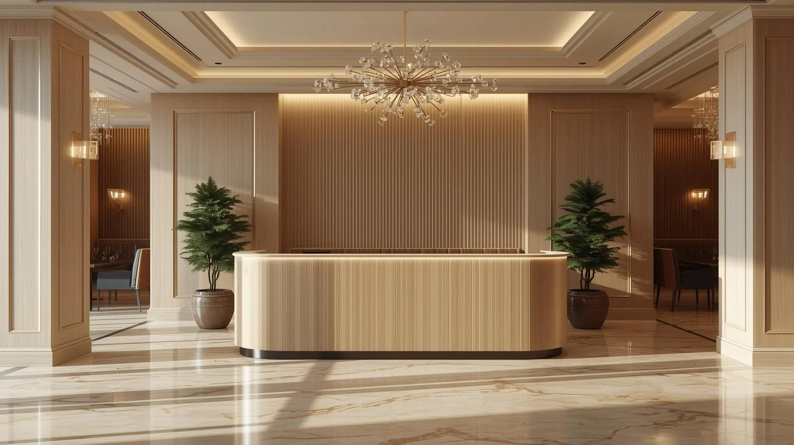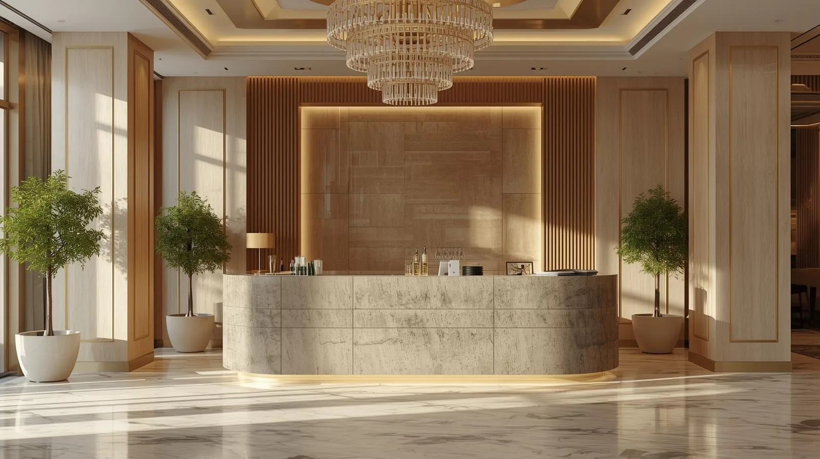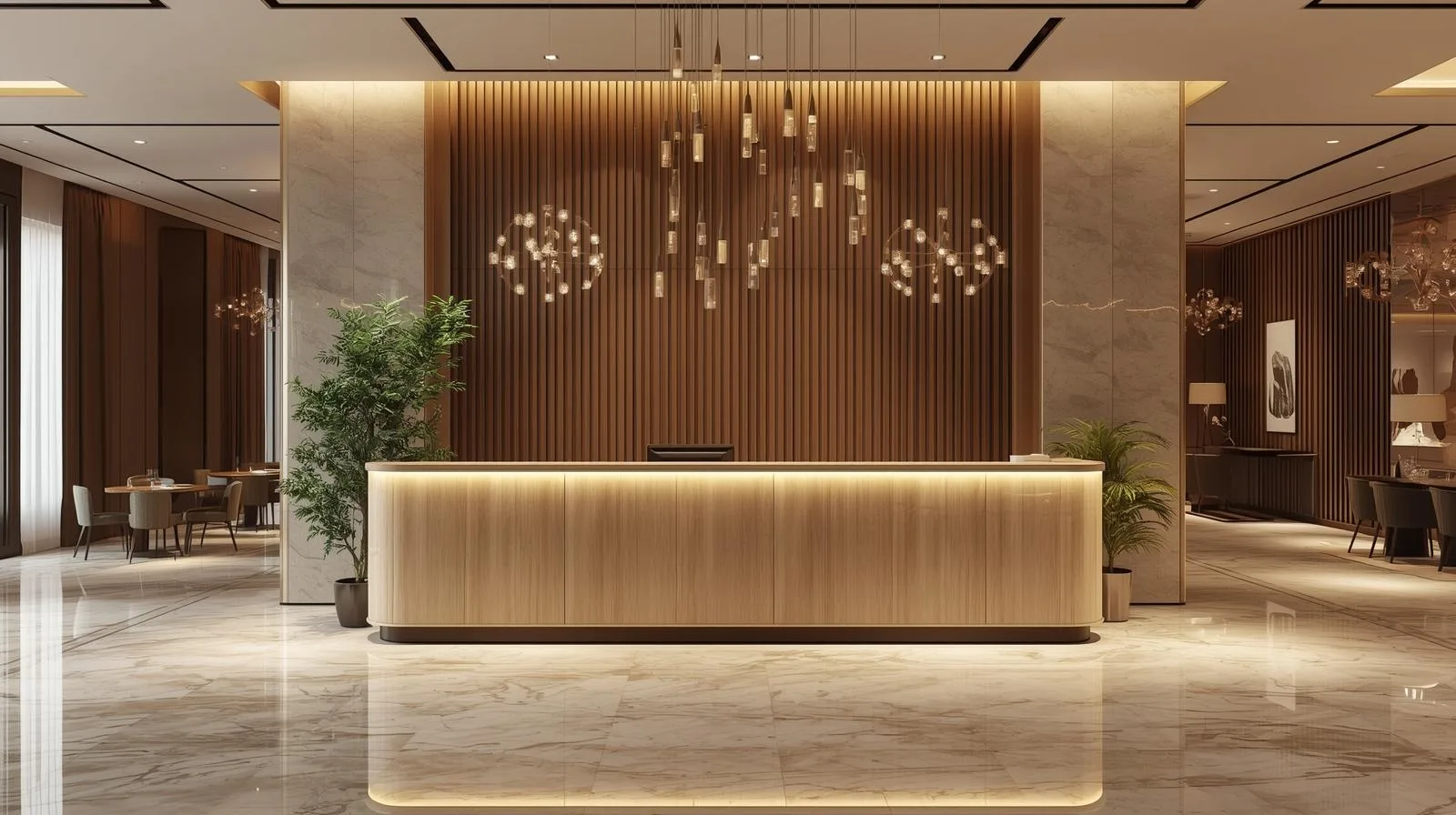 Ấn tượng đầu tiên ảnh hưởng lớn đến cảm nhận của thực khách. Một quầy lễ tân sang trọng, tinh tế sẽ khiến khách hàng tin tưởng và hài lòng trước khi trải nghiệm ẩm thực.